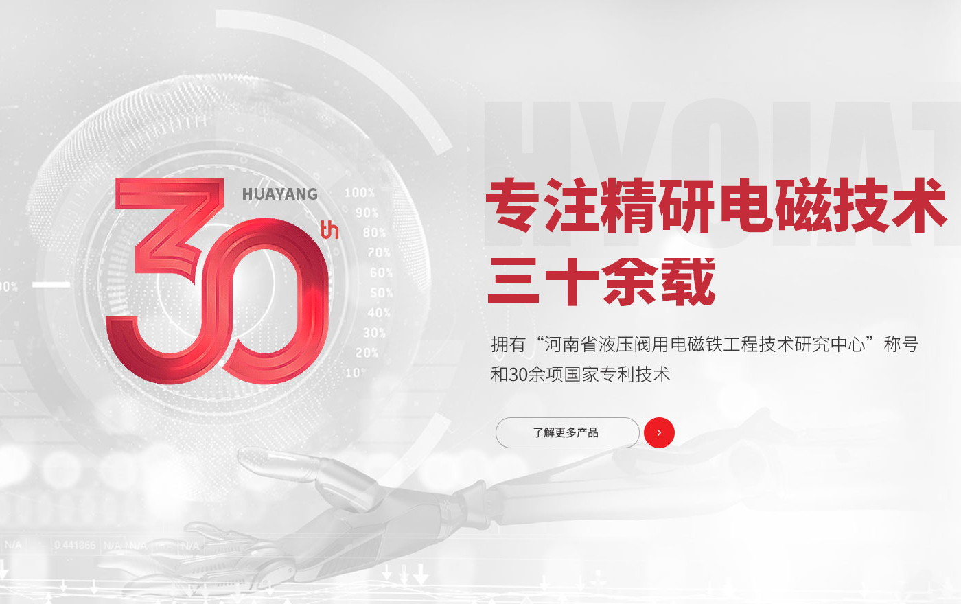 安陽市華陽電磁鐵制造有限公司成立于1998年,位于河南省安陽市中原高新技術產業開發區,占地面積50畝,是一家集電磁鐵研發、制造、銷售為一體的國家高新技術企業。公司先后通過ISO9001:2015質量管理體系、IATF16949:2016質量管理體系認證,擁有多項科技成果及數十項專利,并建有“河南省液壓閥用電磁鐵工程技術研究中心”、“河南省企業技術中心”、“高性能電磁鐵工程技術研究中心”。公司主導產品有開關型、比例型、防爆型、插裝型電磁鐵,LVDT傳感器等,并支持定開發專用電磁鐵。產品廣泛應用于工程機械、塑料機械、數控機床、冶金、紡織、鐵路運輸、電力、石油化工、航空航天領域。